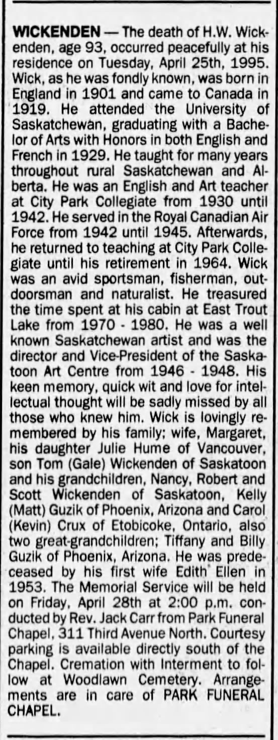 - Emily "Joan" Williams. Born 10 April 1909 in Henbury. Joan taught at Oiwa school for 4 years before marrying Samuel Freeman on 12 December 1933 at St Cypriots Anglican Church, Lacombe, Alberta, Canada. They had seven children and nineteen grandchildren. Samuel died on 16 February 1964 in Rimbey, Alberta. Emily died on 8 January 2003 at Rimbety, Alberta, Canada.